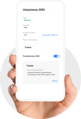 Dzięki specjalnemu mechanizmowi wysyłania SMS-ów możesz m.in. prosić klientów o potwierdzenie podanego numeru telefonu lub wysyłać potwierdzenia rejestracji i przypomnienia o nadchodzących wizytach.