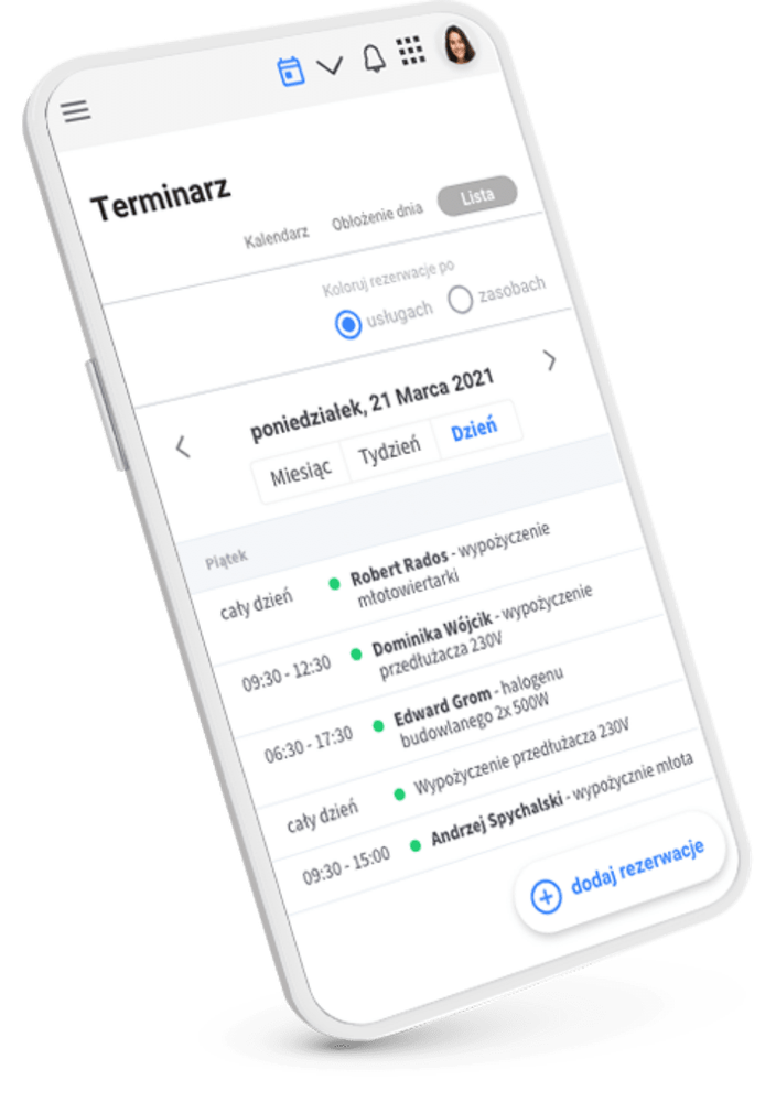 Estetyczny i łatwy w obsłudze kalendarz da Ci możliwość sprawnego przyjmowania dowolnego typu rezerwacji, rejestracji, prowadzenia wynajmu, wypożyczeń czy organizacji zajęć. Wybierz odpowiedni dla Twojej firmy typ terminarza:
